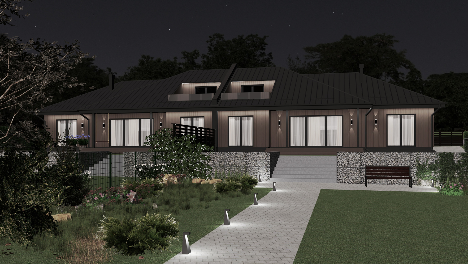 Katrai mājai ir divi stāvi: pirmajā stāvā izvietotas 3 guļamistabas, dzīvojamā istaba un virtuve, 2 vannas istabas un saimniecības telpa. Otrajā stāvā atrodas atpūtas telpa, vannasistaba, kā arī telpa ar izeju uz terasi, ko pēc klienta vēlēšanās var izmantot kā vēl vienu guļamistabu. Katra māja atrodas uz 1200m2 liela zemes gabala un izvietota tā, lai īpašniekam pavērtos skats uz dārzu un upi, tādējādi ļaujot ģimenei pilnvērtīgi baudīt mājās pavadīto laiku. Mājām pieejamas visas pilsētas komunikācijas, un tās paredzēts nodot ekspluatācijā 2020. gada rudenī. Katras mājas platība 268m2.